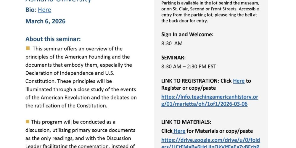 On Friday, March 6th at Campus Martius, we're hosting an opportunity for some FREE teacher training for middle and high school social studies teachers titled, "America at 250: The Legacy of the Declaration of Independence", as part of Ashland University's...