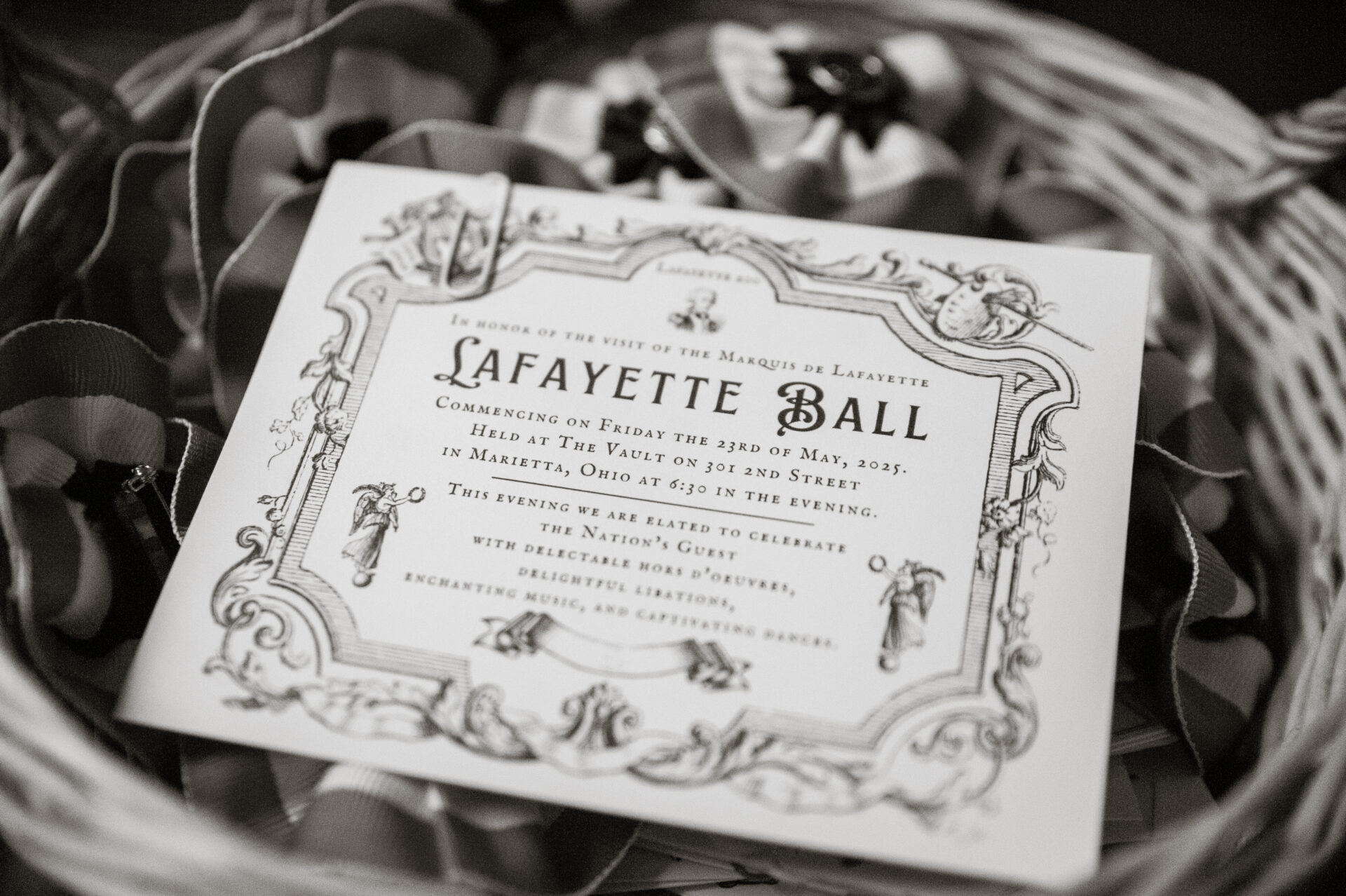 6:00 PM (Doors Open)- The Lafayette Ball at The Vault. Music, dancing, and wonderful food! This is a ticketed, paid event, with a limit of 100 tickets sold. Click here to purchase tickets.